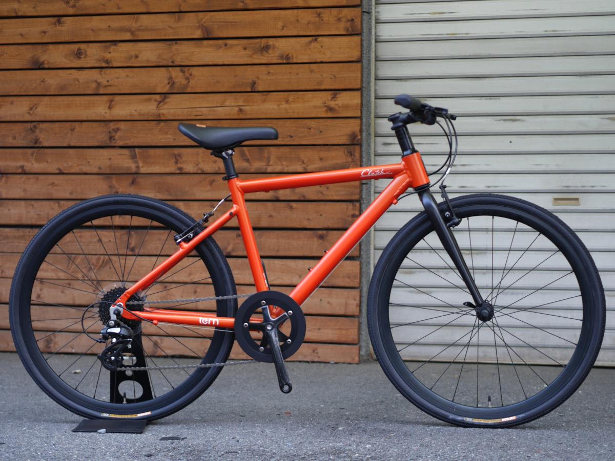 SPEEDS: 1 × 8 WEIGHT: 10.2 kg (22.5 lb) GEAR INCHES: 650c: 35" - 100" (2.74 - 7.97 m); 700c: 37" - 108" (2.94 - 8.54 m) FRAME SIZES: 420(26") : 145 to 155cm / 480(26") : 155 to 165cm / 510(26") : 165 to 175cm / 540(700C) : 175 to 180cm FRAME FRAME: Tern x Kitt Design Clutch, alloy, semi-aero with strength plate at D/T FORK: Hi-tensile straight fork COCKPIT STEM: 3D forged alloy, threadless HEADSET: Threadless HANDLEBAR: Kitt Custom, flat bar GRIPS/BAR TAPE: Biologic Arx SADDLE: Kitt Custom, Beaky Black SEATPOST: Forged alloy BRAKES FRONT BRAKE: Alloy forged caliper, Promax RC482 REAR BRAKE: Alloy forged caliper, Promax RC482 BRAKE LEVERS: Alloy lever WHEELS FRONT WHEEL: Kitt Custom, Crow 3.0 Wheel Set REAR WHEEL: Kitt Custom, Crow 3.0 Wheel Set TIRES: Kitt Custom, Comfort, 650 x 28c / 700 x 28c TRANSMISSION SHIFTER(S): Shimano, trigger, 1x8 spd REAR DERAILLEUR: Shimano Altus CRANKSET: Kitt Custom, Alloy Crank, 44T CASSETTE/FREEWHEEL: Shimano, 11-32T PEDALS: Plastic Black